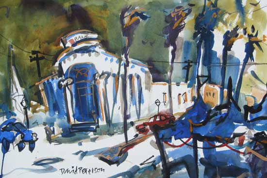 "US Bank, Oak Park", watercolor, 22"x15" by David Peterson. Oak Park Plien Air.
