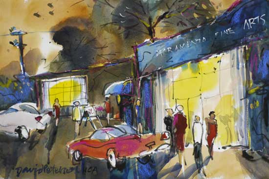 "Art Center", watercolor, ink and chalk, depicts Sacramento Art Center. You know the way! No. 2057. The watercolor is in a private collection.