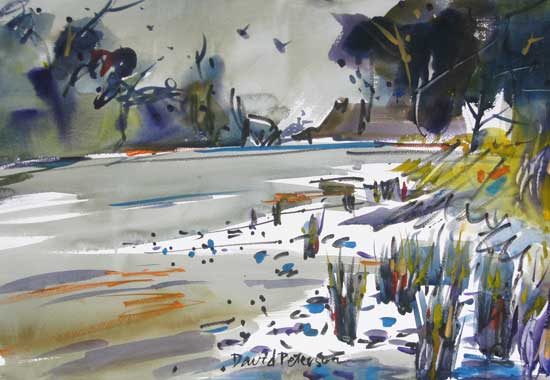 "Easter River", watercolor, 22"x15", by David Peterson.Original available.