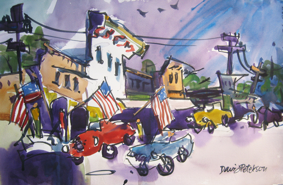 "Bring Back America", watercolor, 22"x15" by David Peterson. Old Town USA. Could this be Folsom?