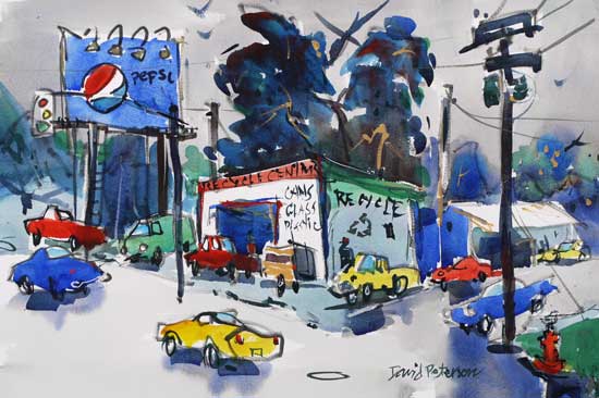 "Carmichael Recycle", watercolor #2319, 22"x15". For sale from the artist.