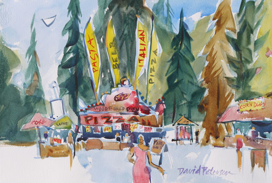 "Wood Smoked Pizza", watercolor, 22"x15", #2816 by David Peterson. Available.