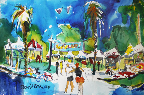 #2844, "Chalk It Up at Fremont Park" 15"x22" watercolor. Fall 2014.