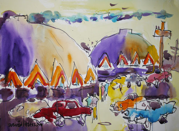 "Save the Domes!", 30"x22" watercolor painted as a demo at Sun City