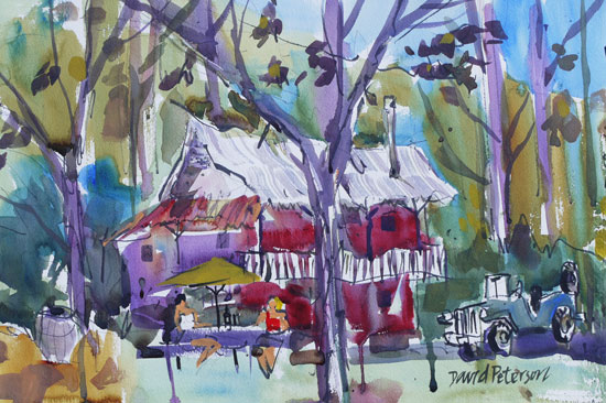 "Boeger Winery", painted plein air at the winery. 22x15" watercolor. For sale, $485, framed.