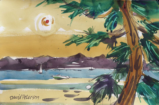 "Tahoe Time", watercolor, 22"x15", #3051 by David Peterson. Painted from life on the north shore. Available.