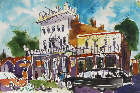 "Lady Adams Building, Old Sacramento", #3102, a 22"x15" watercolor plien air painting from around Halloween..