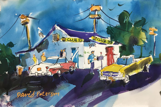 "Club 99", 22x15", watercolor #3213. Available, $485. Stockton, CA.