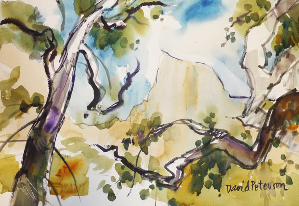 "Yosemite View from the Valley", 22"x15", #3193, watercolor, by David Peterson. This was painted from the foot of the Yosemite Falls trail looking toward Half Dome. For sale