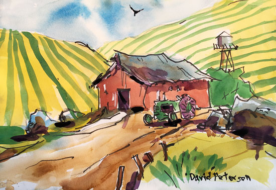 Watercolor #3287, "Napa Barn", 22"x15". Painted by the left hand. Availble.