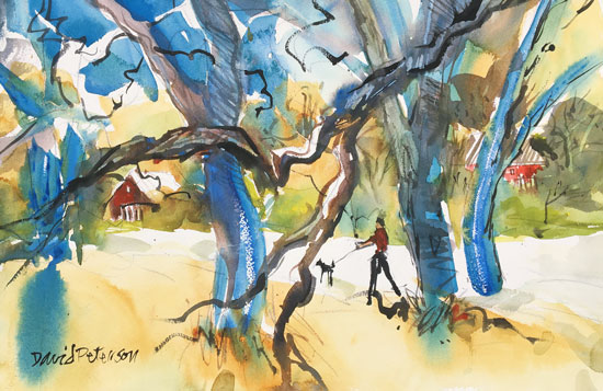 "Walking the Dog", #3345, 22"x15". A plien air painting at Arcade Creek Park. Available.