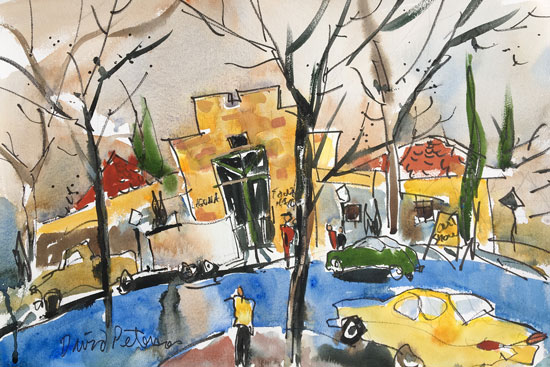This watercolor, #3351 was painted in the parking lot at the beginning of an Elk Grove Arts Festival at Laguna.