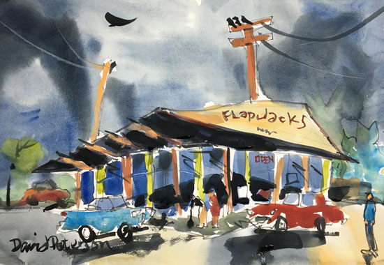 "Flapjacks" #3322, 22"x15". Painted on the occasion of this Arden Arcade landmarks reopening. Available.