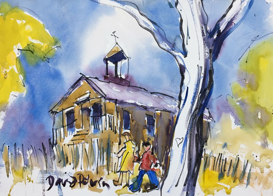 Watercolor #3434, "Edward Kelley School", on Bradshaw in Rancho Cordova. 22x15" plein air watercolor.Available.