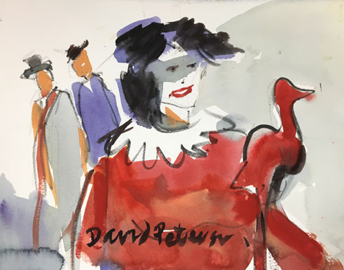 "A Comedy of Errors", 15x11" watercolor, #3436. This watercolor has exhited in a show about 'the theater'. For Sale, framed 20x16" $200.