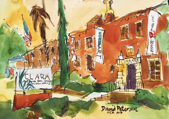 "CLARA", Watercolor #3570, 22"x15". This is a plen air painting of Clara's, formerly the Fremont Primary School on P Strrt in Sacramento. CLARA is now the E. CLAIRE RALEY STUDIOS FOR THE PERFORMING ARTS.