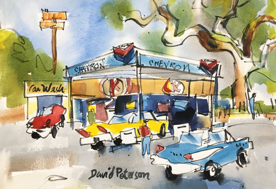 Watercolor #3531, "Carmichael Chevron", on Marconi and Walnut. 22x15" plein air watercolor. SOLD