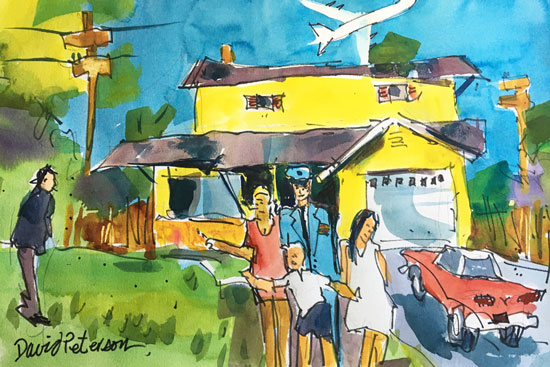"The Major and His Family", 22"x15", #3276, watercolor, by David Peterson. This Rancho Cordova Family in the 60's played a part in my life. Available. Maybe.
