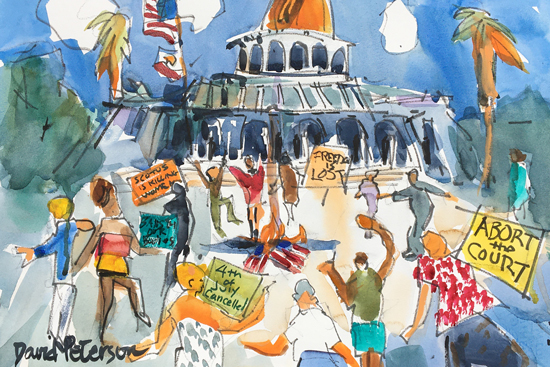 "F__k 4th of July" is the title in the sketch book, #3667, 22x15" watercolor, July 6, 2022 It is not painted at the Capitol, but at studio from sketches made from 'Zoom' visits. Images ©2022 David Peterson