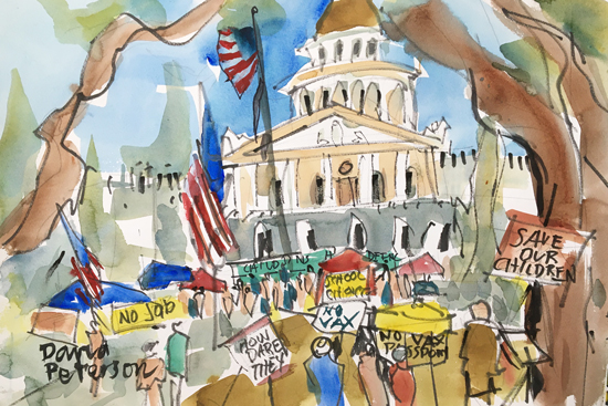 "Capitol, MLK Day", 22x15", #3621.plien air alla prima at the California State Captitol. A peaceful loving event! No domestic terrorists here. Several tributes to MLK!