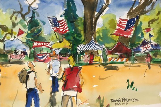“Constitution Day at Folsom City Park”, Watercolor, showed at Sacramento Fine Arts Center's "Magnum Opus" exhibit, January 30-February 24, 2024 and at the MACC Members Show in June 2024. Private collection.