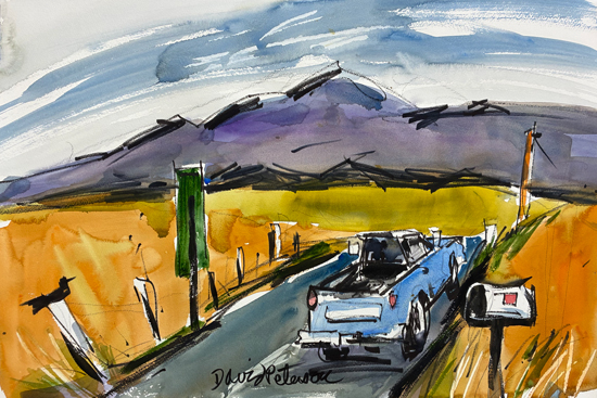 Showed at Rancho Cordova City Hall winter 2024-25, "Golden Street", 22x15" watercolor and acrylic on gessoed paper. This work is now in my studio.