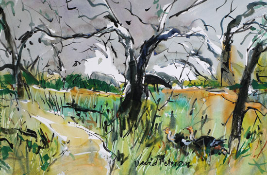 "Parkway Turkeys", 22"x15" watercolor, winner, 1st