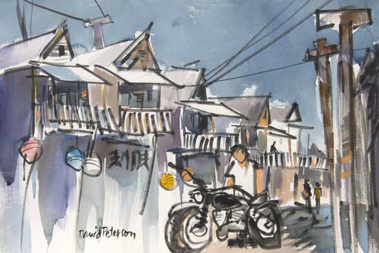 The weather was unusually warm and sunny! Above, "Fishn'", Watercolor