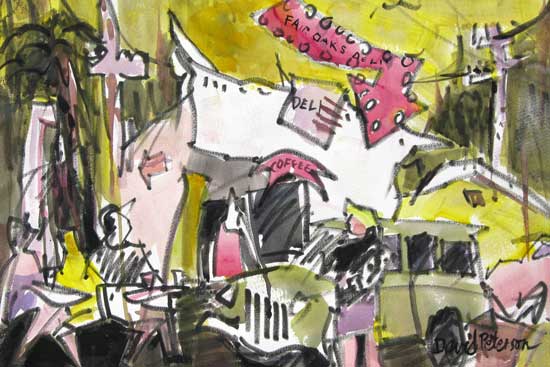 No. 1017, "Hippies Use Rear Entrance", May, 2007. Watercolor, 22" x 15". $500.00 framed. Is that Paula's sister?