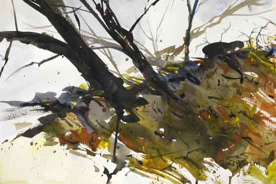 Watercolor No. 1118, "American River Bank". Painted on the American River, February 2008. 22" x 15", SOLD. © 2008 David Peterson