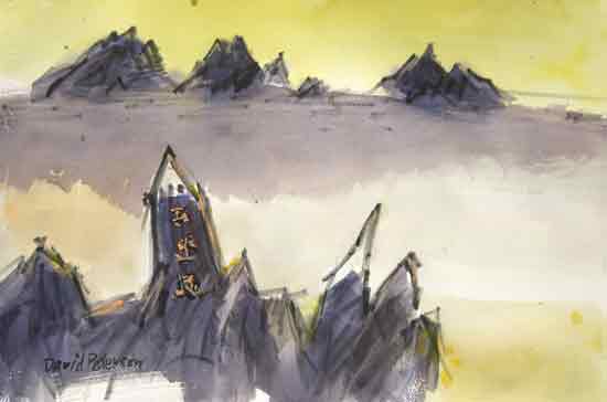 No. 1251, "Manzanar Sunrise", Watercolor, 22"x15". Painted July 1, 2008. For sale from the artist.