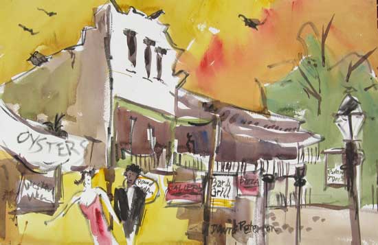 Watercolor No. 1385, "K Street Friday Night", 22" x 15", November 7, 2008. Original available from the artist.