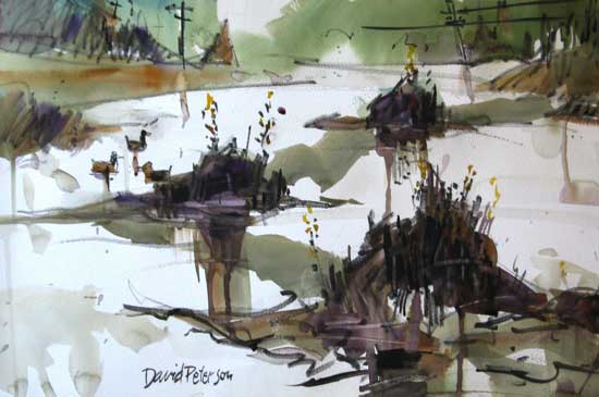 Watercolor Number 1446, "Wm. Ponds Recreation Area", 22"x15", this is an American River Scene. Painted January 14, 2009 from sketches done on site.