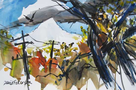 Watercolor No. 1541, "Spainhower Park, Lone Pine", 15"x22", painted May 1, 2009 on site. For sale. Contact the artist.