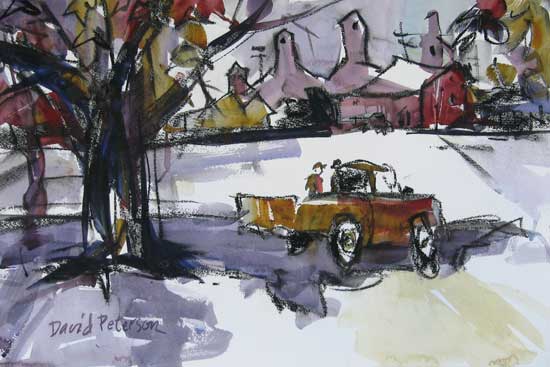 Watercolor No. 1573, "Davis Ranch On A May Day", 15"x22", charcoal and watercolor.