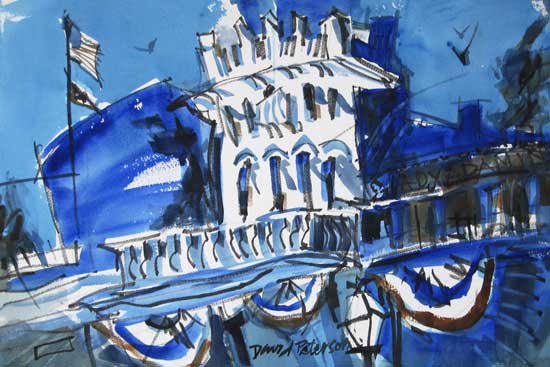 Watercolor No. 1618, "K Street Blues", painted plein air in Old Sacramento, on K Street, Friday July 24, 2009. For sale.