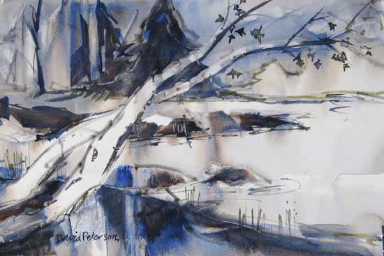 "American River East of Watt". 22"x15" watercolor, painted east of South Watt American River Access, Friday November 20, 2009. For sale.