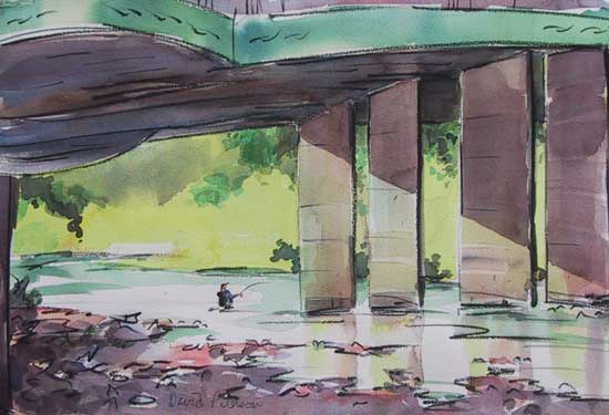 No. 291, "Watt Avenue Bridge, Sacramento", September 20, 2003, 22" x 15" For Sale, $500 framed. ©2003 David Peterson