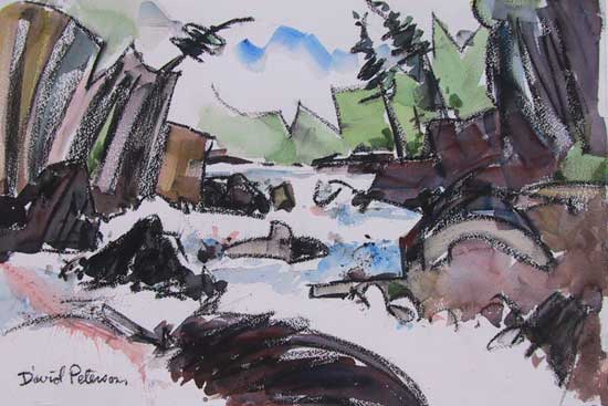 No. 416, "Upper Sacramento", July 18, 2004. Watercolor and charcoal, 22 x 15". Framed and for sale, $500.00. ©2004 David Peterson