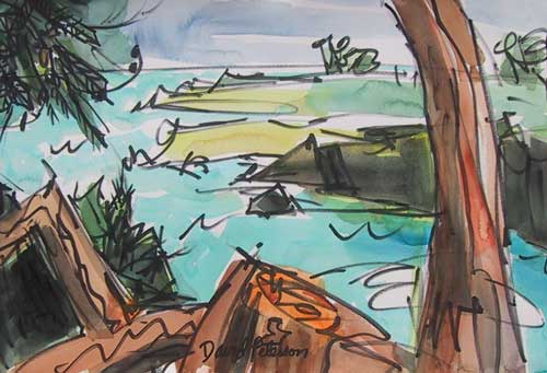 No. 471, "Up A Dead End Road Without A Pencil" . November 15, 2004, Mendocino. Watercolor and Sharpie®, 22 x 15". Available.