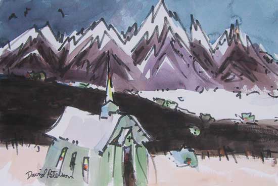 No. 514, "Sierra Spires", April 30, 2005. Watercolor and ink marker, 22x15, available. © 2005 David Peterson