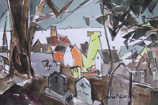 No. 563, "Mendocino Cemetery", Watercolor and Ink Marker, 22" x 15". Painted August 9, 2005. Private collection..