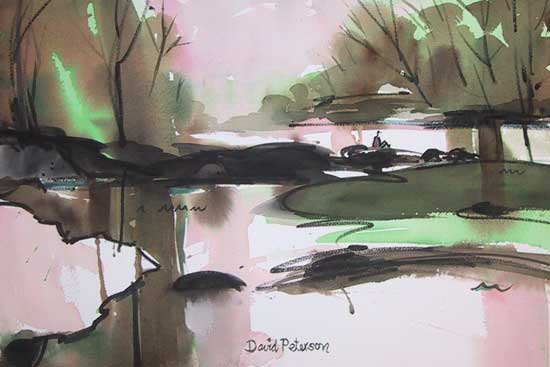 No. 580, "American River Fishin' Hole", Watercolor, 22" x 15". September 2, 2005, painted plein air. For sale. © 2005 David Peterson