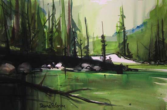 No. 582, "Sierra September", Watercolor, 22" x 15". September 18, 2005, painted plein air. For sale. © 2005 David Peterson
