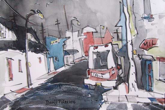 No. 613, "City Without Trees I". December 5, 2005. Watercolor, Ink and Chalk.22" x 15". Available. ©2005 David Peterson
