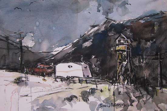 No. 663, "Manzanar Tower 2006", Watercolor and charcoal, 22 x 15".Painted Plein Air, May 21, 2006. Private collection..