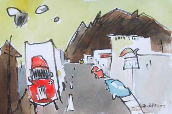 No. 665, "A Nice Little Town" May 24, 2006, Watercolor, 22" x 15". Available for sale. ©2006 David Peterson