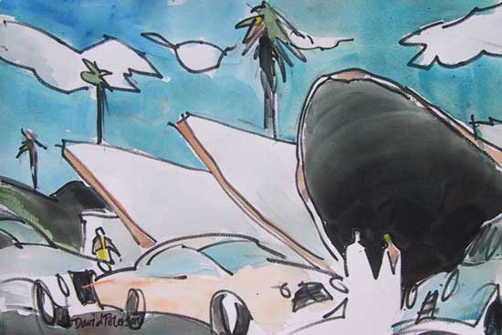No. 697, "Country Club Lanes", $500.00 July 29, 2006, Watercolor, ink, 22" x 15". ©2006 David Peterson