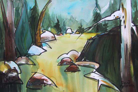 No. 717, "Sierra Gold". September 20-21, 2006, Watercolor and ink marker, 22" x 15". ©2006 David Peterson