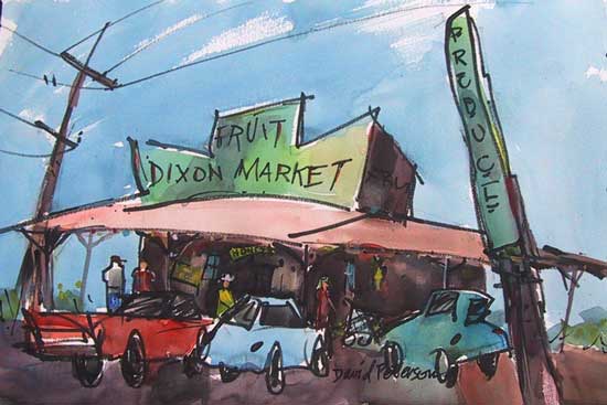 No. 721, "Dixon Market", SOLD September 20-21, 2006, Watercolor and black ink line, 22" x 15". ©2006 David Peterson